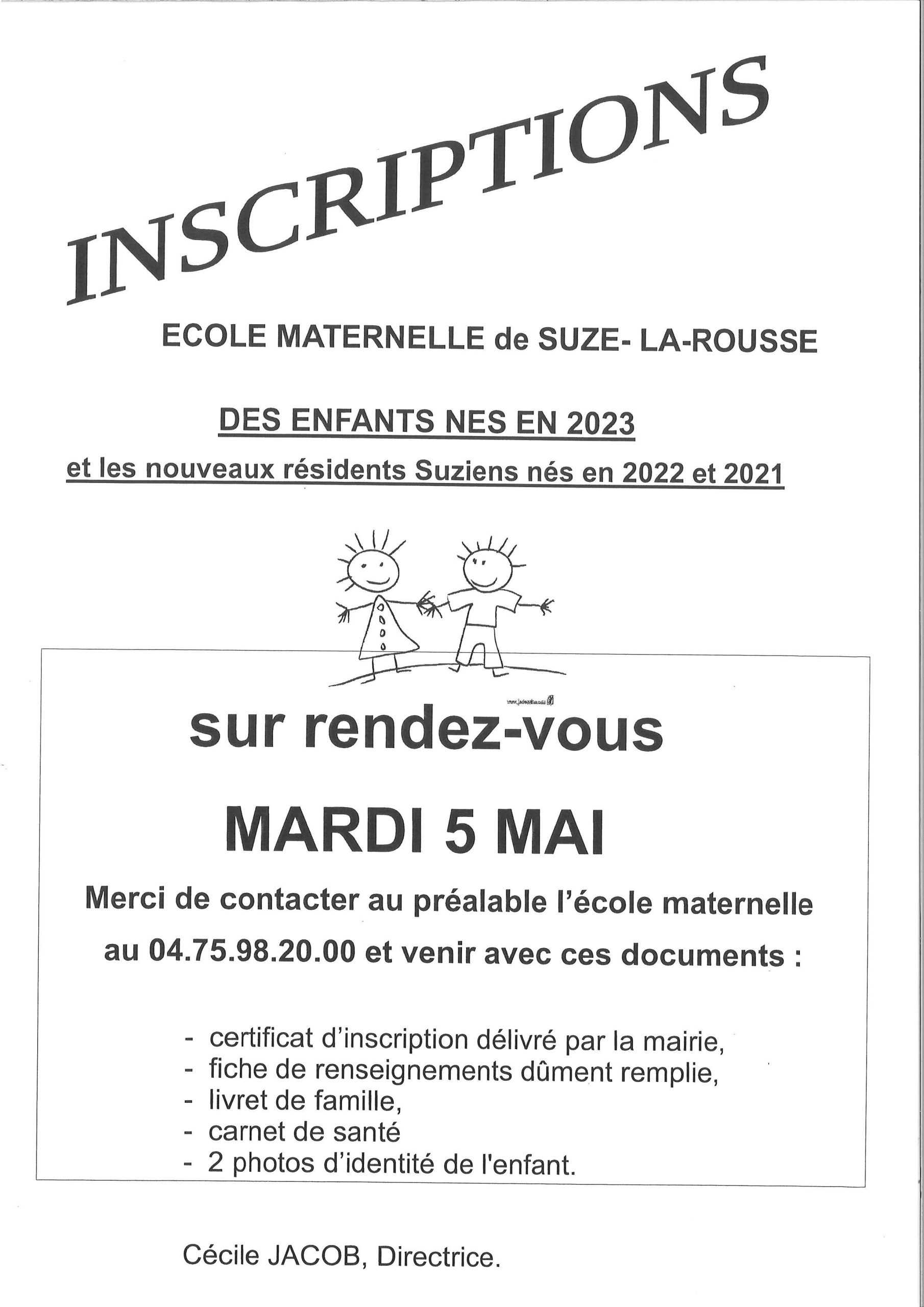 Mardi 5 mai : Inscriptions Ecole maternelle Voir l'image agrandie Fiche de renseignements : ICI suze2026-03-02T15:05:46+01:00mars 2nd 2026| Articles similaires Vendredi 13 mars : AG AMIS DE ST TURQUOIS Galerie Vendredi 13 mars : AG AMIS DE ST TURQUOIS Café papote – Saint Paul Galerie Café papote – Saint Paul Vendredi 6 mars – Portes ouvertes au collège Galerie Vendredi 6 mars – Portes ouvertes au collège PIMMS Camion d’aide à vos démarches en ligne – planning 2026 escales à Suze la Rousse Galerie PIMMS Camion d’aide à vos démarches en ligne – planning 2026 escales à Suze la Rousse Ateliers mémoire à destination des seniors Galerie Ateliers mémoire à destination des seniors