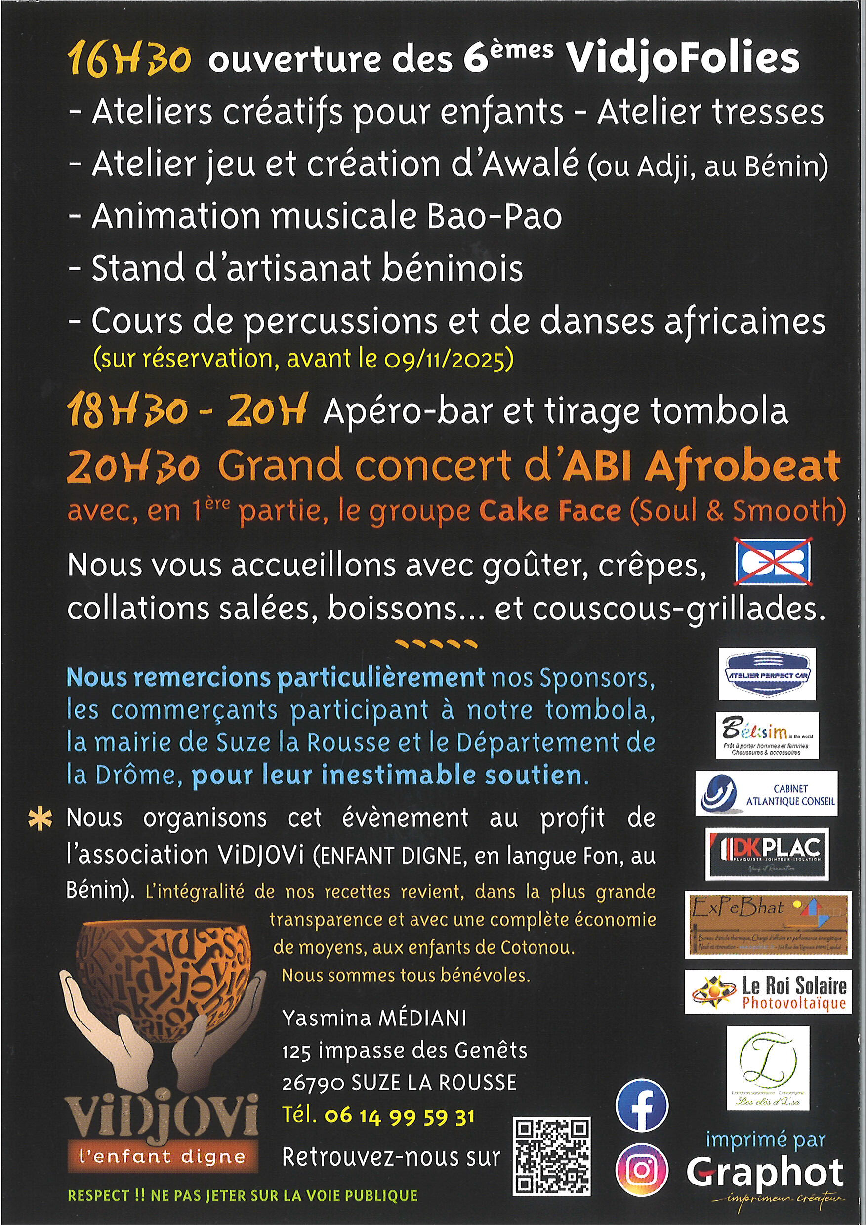 Samedi 15 novembre – VIDJO FOLIES Voir l'image agrandie Informations : 06 14 99 59 31 ou Page facebook suze2025-10-29T10:22:13+01:00octobre 12th 2025| Articles similaires Du 3 au 8 novembre – Distribution de compost à la déchetterie Galerie Du 3 au 8 novembre – Distribution de compost à la déchetterie Mardi 11 novembre – Banquet proposé par l’association des Anciens combattants Galerie Mardi 11 novembre – Banquet proposé par l’association des Anciens combattants Mercredi 12 novembre – FORUM DES OPERATEURS FIBRE OPTIQUE Galerie Mercredi 12 novembre – FORUM DES OPERATEURS FIBRE OPTIQUE Exposition de patchwork – Jusqu’au 16 novembre Galerie Exposition de patchwork – Jusqu’au 16 novembre Samedi 29 et dimanche 30 novembre – Marché des créateurs et artisans Galerie Samedi 29 et dimanche 30 novembre – Marché des créateurs et artisans